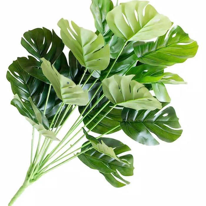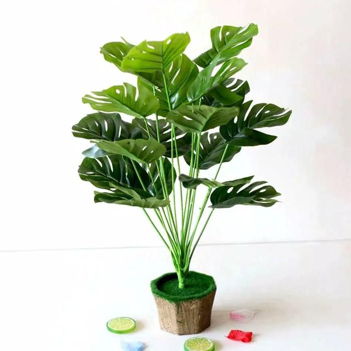 DAUN MONSTERA BUNGA PLASTIK DAUN HIAS BUNGA ARTIFICIAL BUNGA PALSU - Daun + Pot