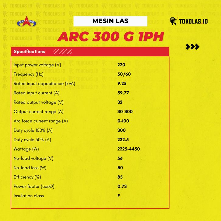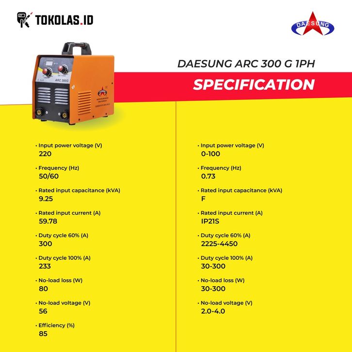 Mesin Travo Trafo Las MMA Stick Inverter Welding Daesung ARC 300 G 1 Phase Digital Display Korea Arc Force