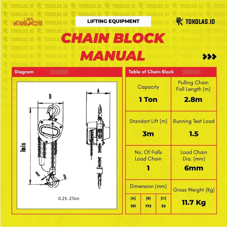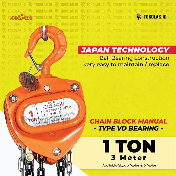 Kobachi Chain Block Takel Katrol Manual VD Jepang Japan Tech 1 Ton x 3 Meter