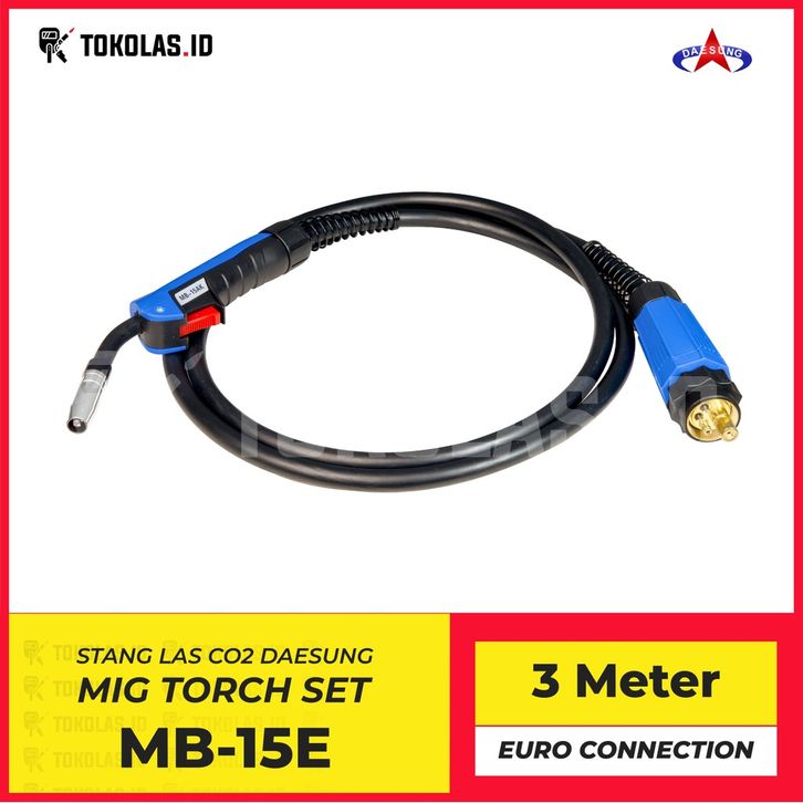 Daesung Stang Las MIG Welding Torch CO2 CO MB15 MB 15 15E Euro Binzel Panjang 3 Meter Gun