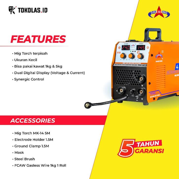 Mesin Las Listrik Travo Las Mig 4 in 1 Daesung MIG 145 XL Multifungsi Flux Cored Bisa Kawat 5KG Tanpa Gas CO Korea Lift
