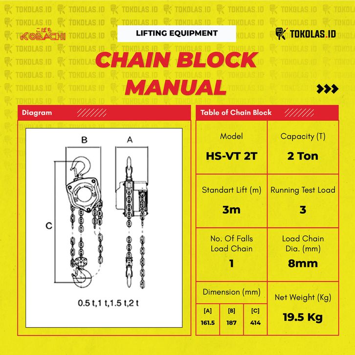 Kobachi Chain Block Takel Katrol Manual VT Jepang Japan Tech 2 Ton x 10 Meter