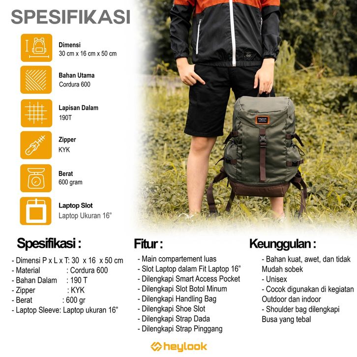 HEYLOOK Tas Ransel Gunung HAMERU Backpack Carrier Hiking Camping Outdoor 40L Tas Travelling Tas Travel Tas Backpacker