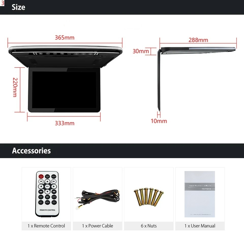 Tv plafon / Roof 13.3", MP5 IPS SCREEN FULL HD 1080P. USB, MMC, HDMI & Speaker