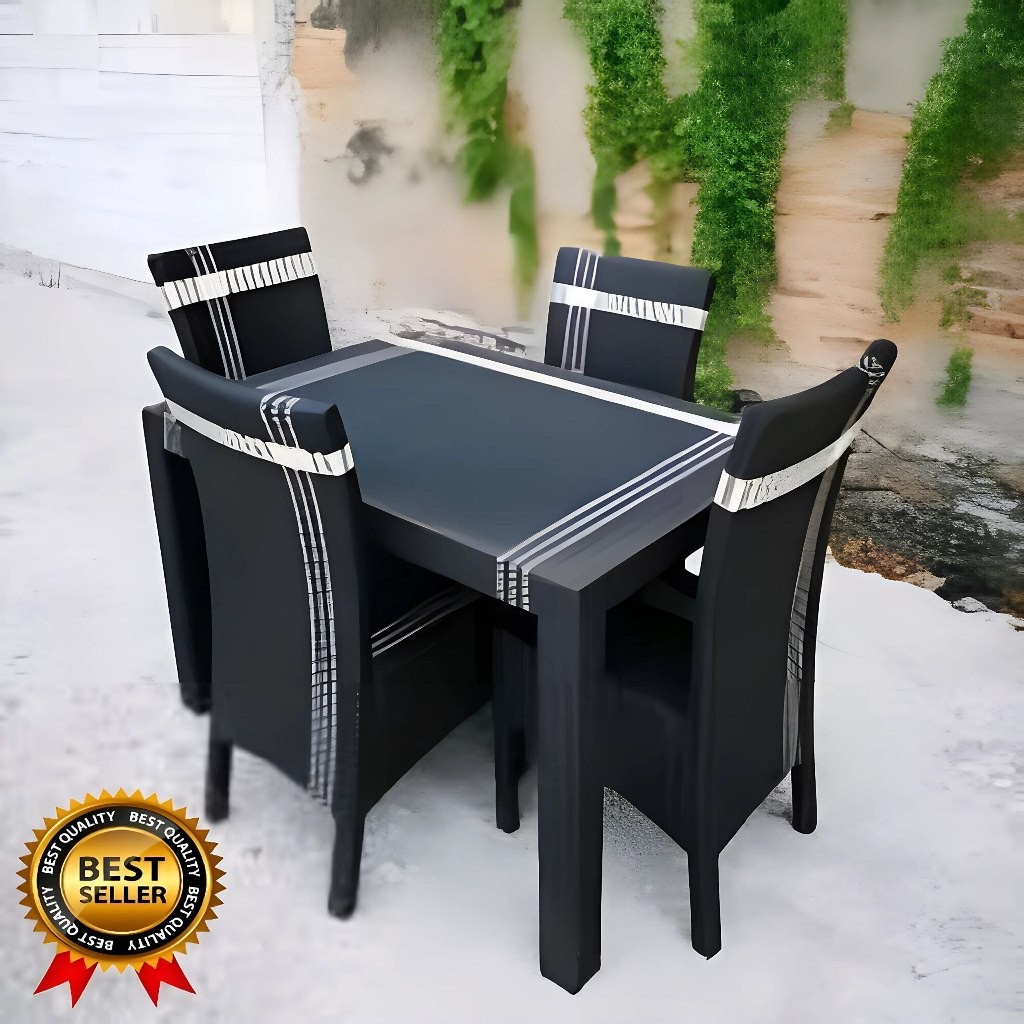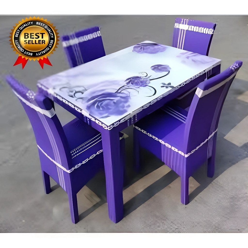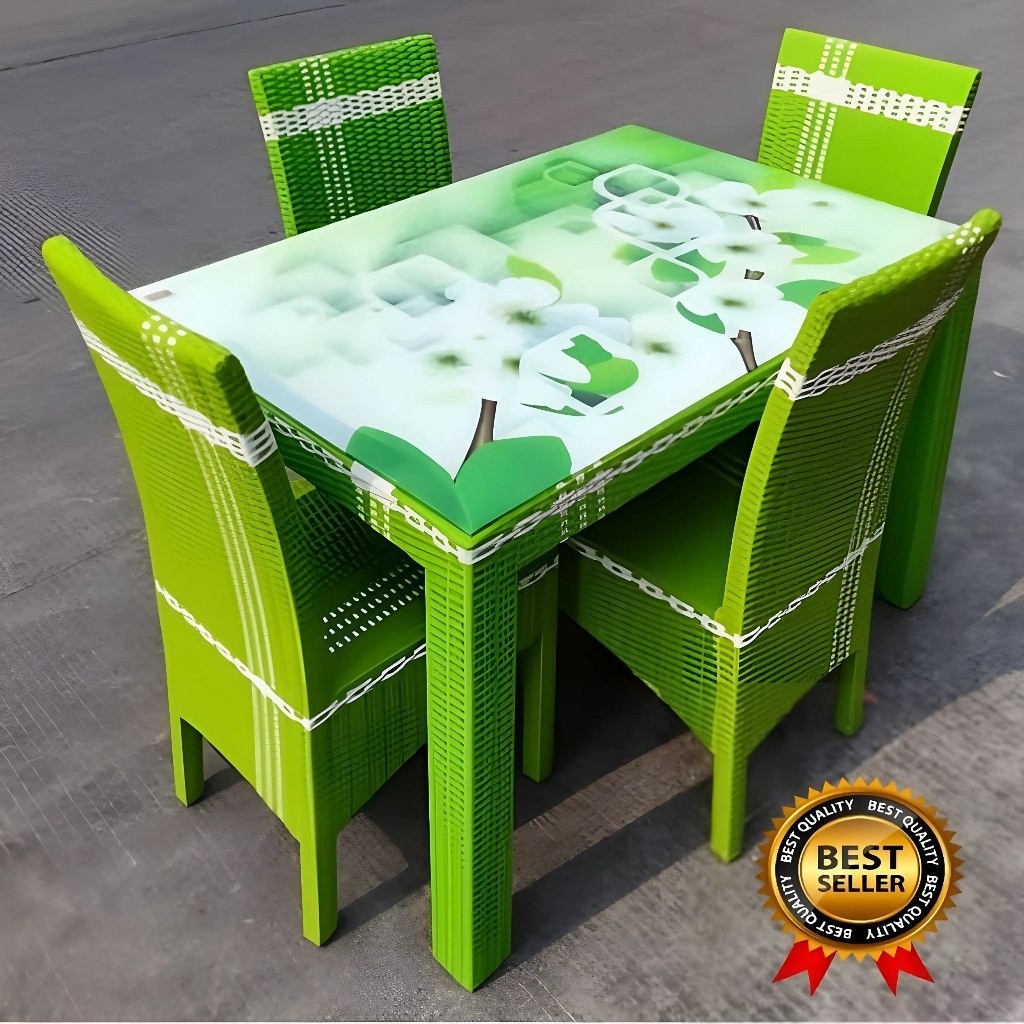 Meja Makan Rotan 4 Kursi High Quality Kaca Motif