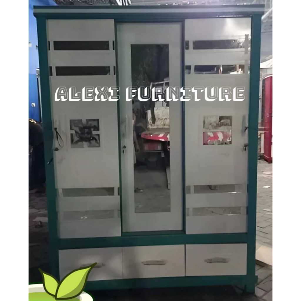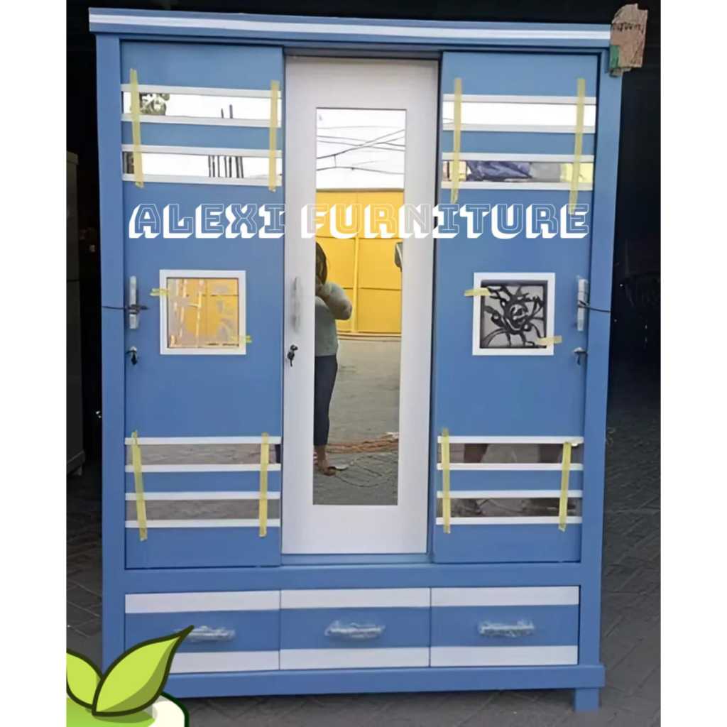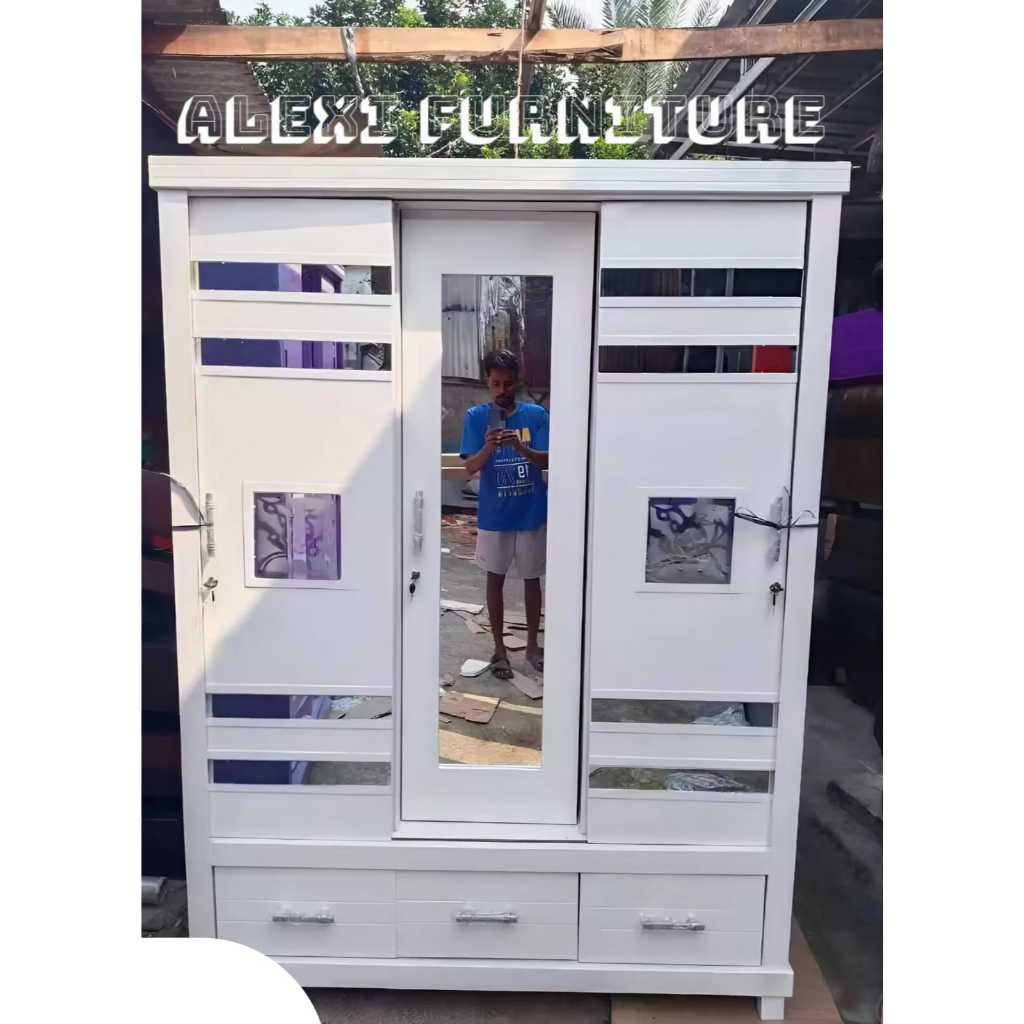 Lemari Pakaian 3 Pintu Sliding Laci Bawah Anti Jamur - Furniture
