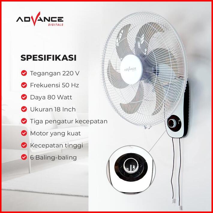 Advance Wf-1846 Kipas Angin Dinding Besi 80 Watt 18 Inch Garansi Resmi 1 Tahun