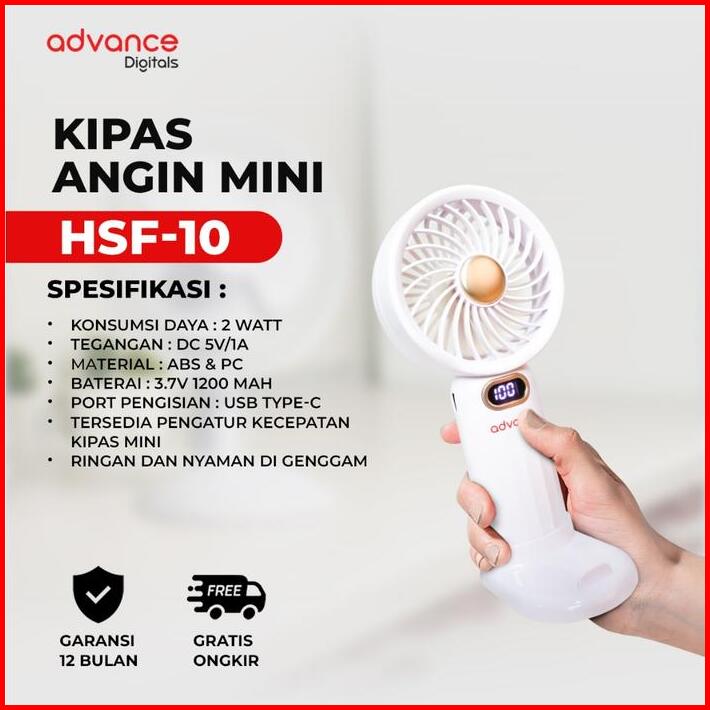 Advance Kipas Angin Mini Turbo Hsf-10 High-speed Display Led Adjustable Fan Garansi Resmi 1 Tahun