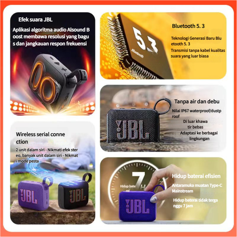 JBL GO 4 PORTABLE BLUETOOTH SPEAKER OUTDOOR SPORTS WATERPROOF BASS