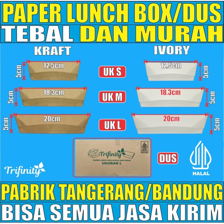 ( HARGA PROMO ) Paper Lunch Box HALAL Tebal Kraft Coklat n Ivory Putih Food Tray Uk S M L Dus Kertas Take Away Jskrm