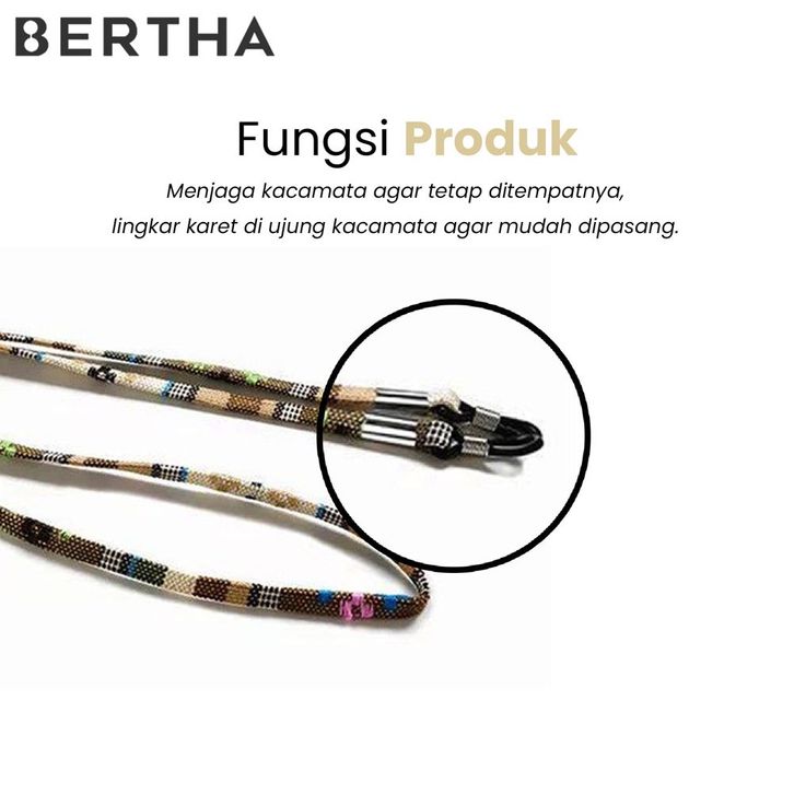 EKSKLUSIF Bertha Tali Kacamata Retro Vintage Dewasa Fashionable Aksesoris Kacamata Multifungsi unebs