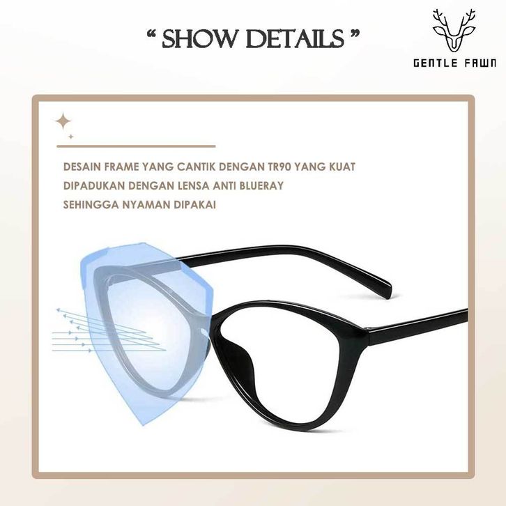 TERBARU Gentle Fawn Kacamata Antiradiasi Blueray Sinar Biru Style Cat Eye Bahan TR90 Kuat Kokoh Bisa Minus