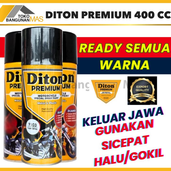 ARMY GREEN 9303, ATANTIS BLUE Y9295, BEAT ORANGE H935, BLACK DOFF 9184, BLACK METALLIC 9239, CANDY TONE RED 9311, CHILLI RED 9462, CLEAR ACTIVATOR 9128, DARK GREEN 9432, DASBOARD HITAM 400CC, FORTUNE BLUE 9421, HIGH TEMP BLACK 300, HIGH TEMP BRONZE 300, HIGH TEMP SILVER 300, LEMBAYUNG VIOLE P920, MAGENTA PINK 9433, MASTER RED H9231, NINJA GREEN K9518, NINJA ORANGE K9519, PCX MATTE GREY H9280, POLICE GREY 9112, PREMIUM BLACK 9109, PREMIUM SILVER 9124, PREMIUM WHITE 9102, PRIMER GREY 9120, REPSOL ORANGE 9237, SCOOPY BEIGE H9320, SILVER 9OLD VG9610, SILVER METALLIC 9180, SPORTY TOSCA Y9164, STYLIST RED MAT H928, TIGER YELLOW 9425, TITANIUM GREY VG9282