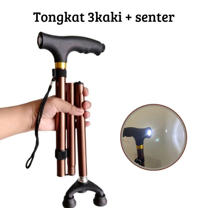 BARU Tongkat lipat senter kaki tiga tongkat kaki 3 manula tongkat senter lampu aluminium Alat bantu jalan double