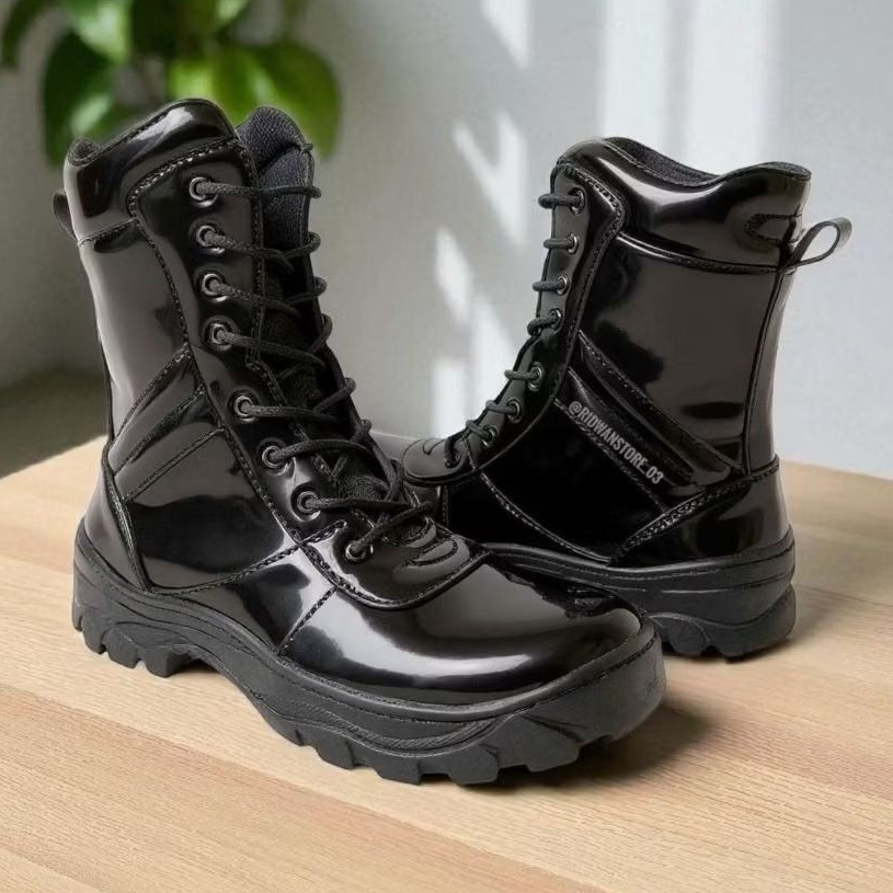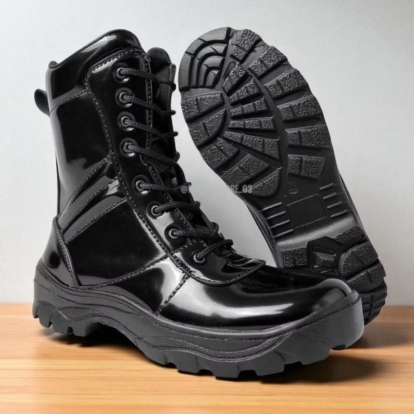 Sepatu PDL TNI AD Polri Satpam Boots Shoes Kerja Hitam Premium Sintetis Tinggi 8 inc