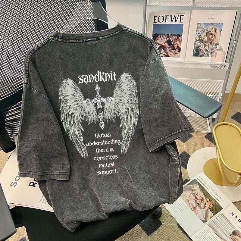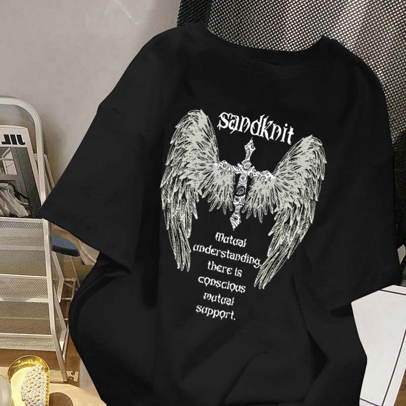 Pola sayap malaikat salib Amerika Kaos Lengan Pendek Pria|Kaos Pria Terbaru 2024|Kaos Cotton Combed 30s|Kaos Cowok Distr