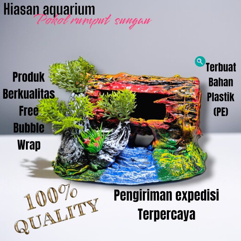 Dekorasi Ornamen Hiasan Aquarium Aquascape Rumah ikanTerowongan pokol tidur tunas sungai