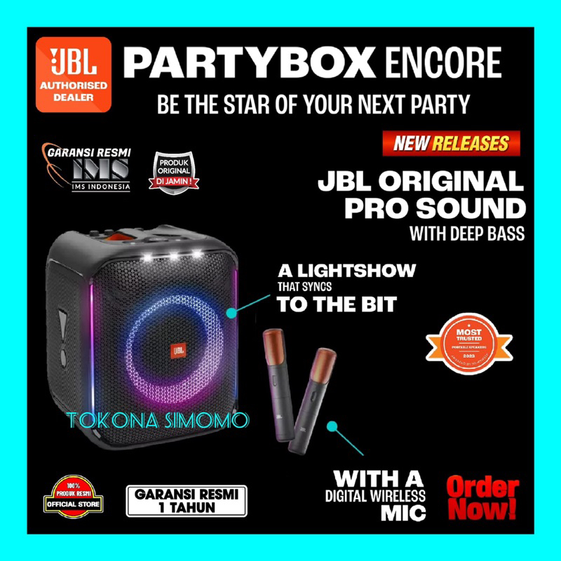 JBL PARTYBOX ENCORE PORTABLE BLUETOOTH SPEAKER W/ 2 WIRELESS MIC
