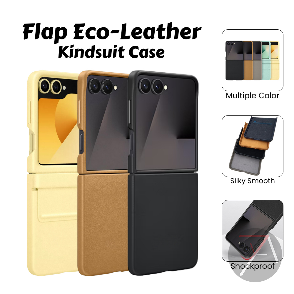 Eco Leather Kindsuit Case untuk Samsung Galaxy Z Flip 7 6 5 Flip7 Flip6 Flip5 5G Flap Casing Kulit Premium Slim Hard Full Cover Hinge Protection High Quality Viral Mewah Original