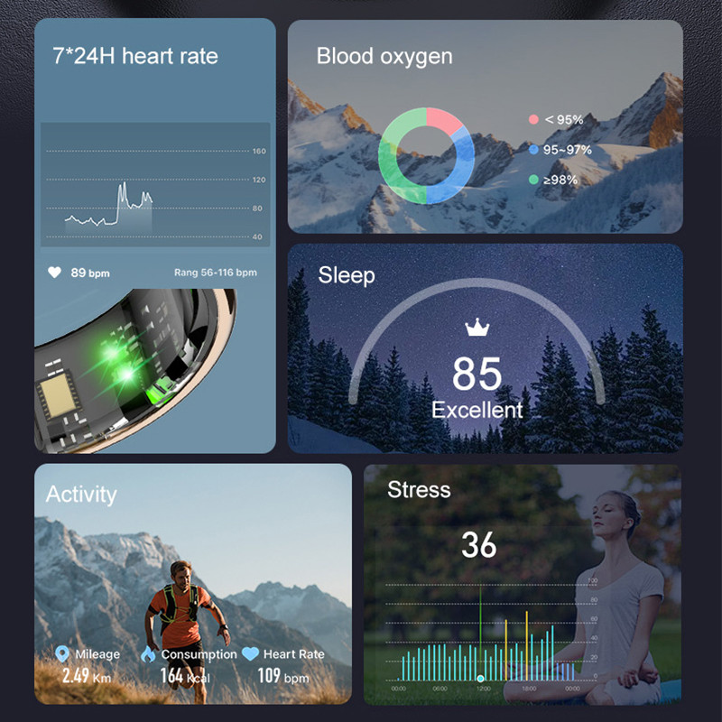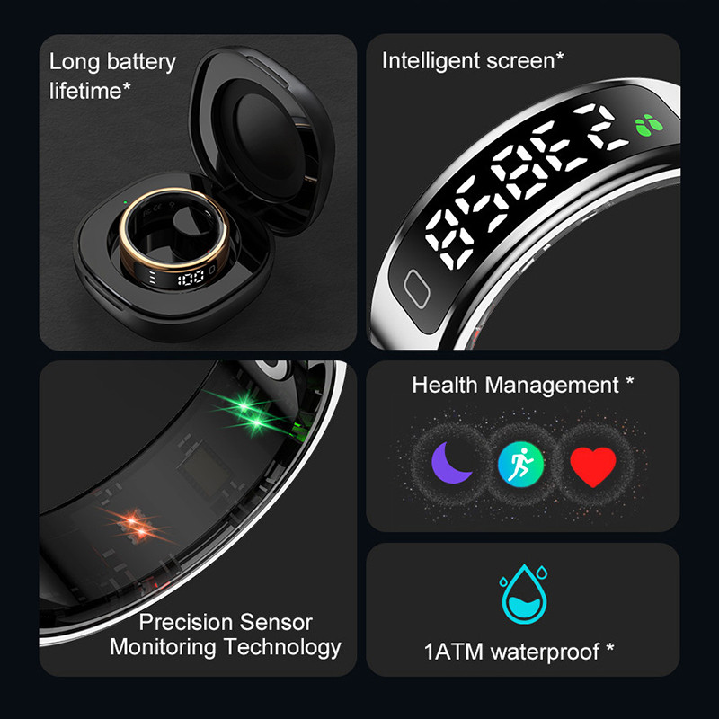 R11C SMART RING WITH DISPLAY SCREEN HEART RATE SLEEP MONITORING MULTI SPORT MODES 1ATM WATERPROOF SMART RING WITH CHARGI