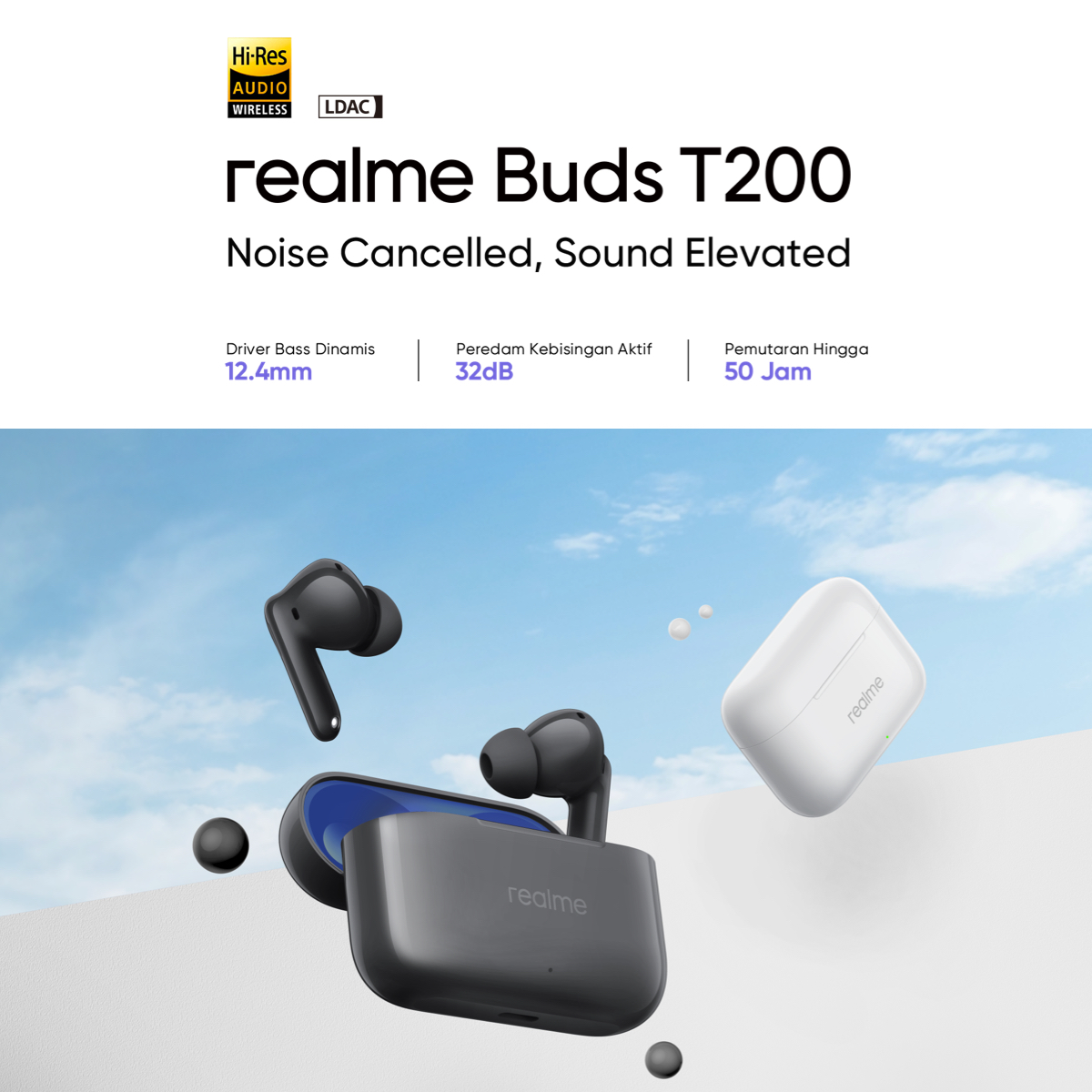 [Star] realme T200 (Bass Driver Dinamis 12.4mm | Peredam kebisingan 32dB | Pemutaran hingga 50 jam)