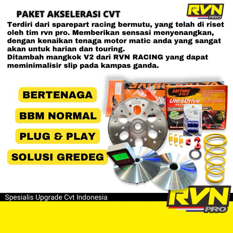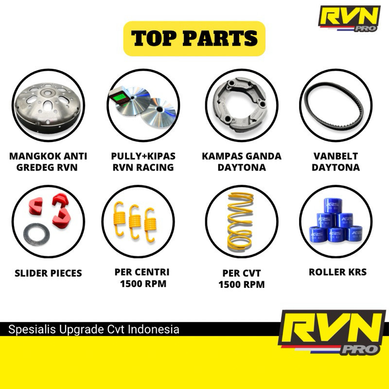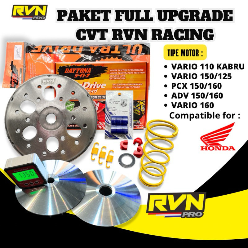 RVN PAKET 9IN1 (SUPER FULL) UPGRADE CVT KIRIAN VARIO 125 150 160 PCX 150 160 ADV 150 160 MANGKOK GANDA KAMPAS VBELT DAYTONA PULLEY ROLLER SLIDER RING PER SENTRI PER CVT ORIGINAL THAILAND | CTM RACING