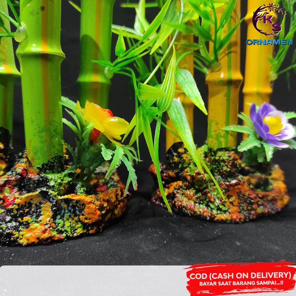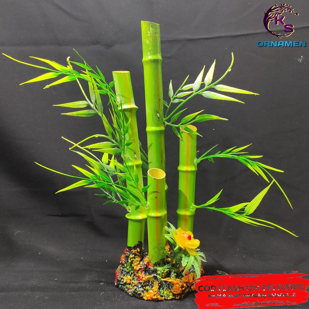 Hiasan Aquarium Bambu China l Hiasan Akuarium Tanaman Plastik Pohon Bambu Tinggi