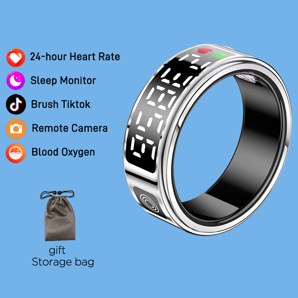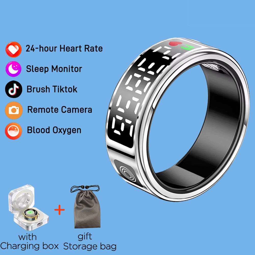 SR08 SMART RING MEN WOMEN LED SPLAY SCREEN HEART RATE BLOOD OXYGEN MONITORING MULTI SPORTS MODES 5ATM WATERPROOF 2025