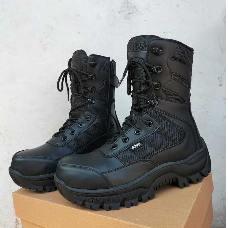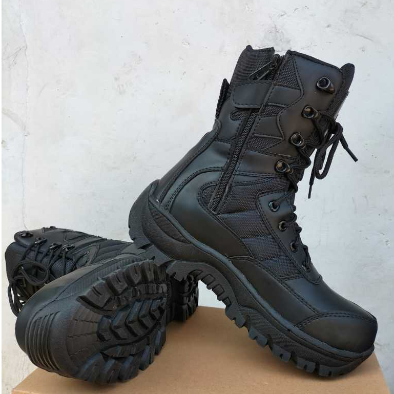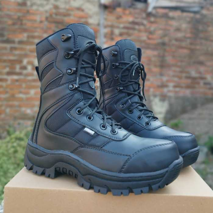 sepatu pdl polri terbaru predator safety ujung besi hitam 8 inci