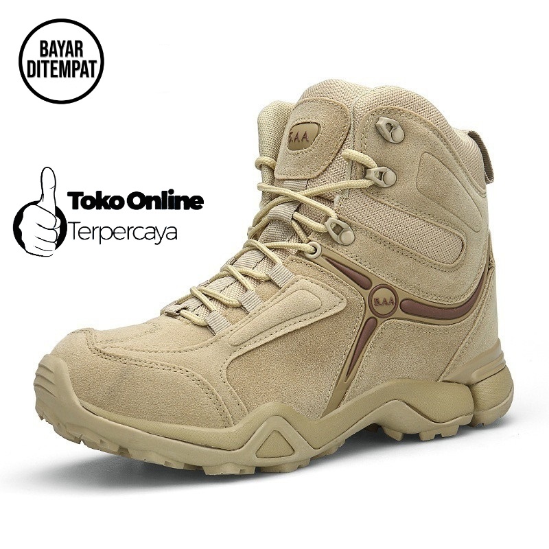 Sepatu Safety Pria Tactical 5AA / Sepatu Satpol PP PDL Murah / Sepatu Safety Boots Ujung Besi Sepatu Pria Tactical 5AA Boots Sefty Cream 6'Inci Sepatu Hiking Touring Outdoor