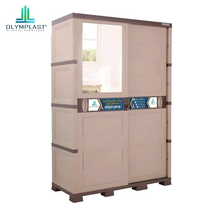 Olymplast OTC Sliding Modern Lemari Pakaian Baju 2 Pintu Geser Slide Door Cabinet Penyimpanan Kabinet