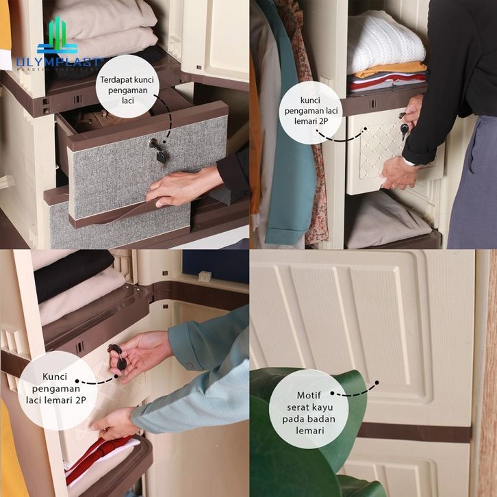 Olymplast SCOC 2P Leather Lemari Pakaian Baju 2 Pintu Plastik SCO C Laci Penyimpanan Serbaa Storage