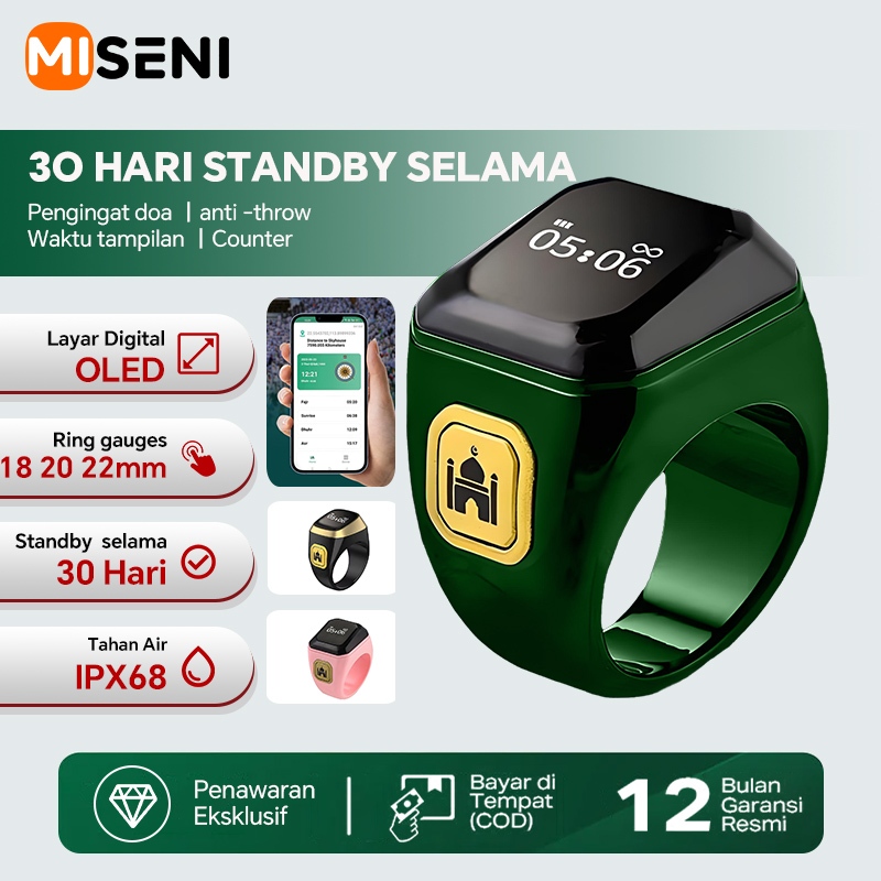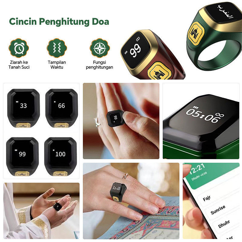 MISENI MUSLIM ZIKR RING TASBIH DIGITAL CINCIN OLED DISPLAY SMART RING BLUETOOTH,APP CONTROL,MULTI-FUNGSI PENGINGAT DOA,A