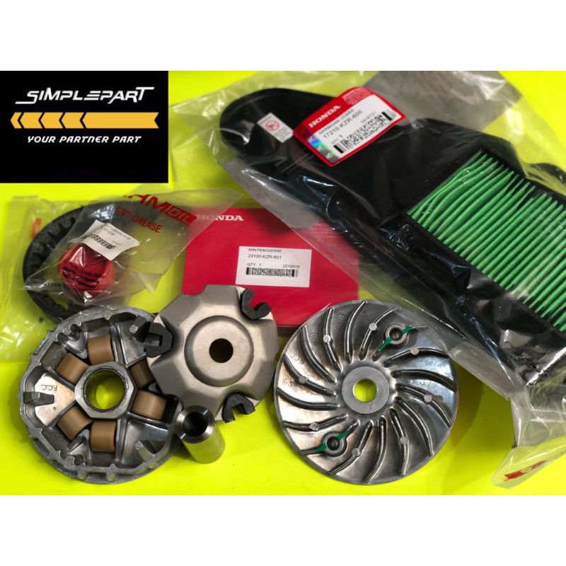 PAKET RUMAH ROLLER VARIO 125 + VBELT ONLY VARIO 125 + KIPAS VARIO 125 + GEMUK CVT + FILTER UDARA VARIO 125 OLD VARIO 125 FI