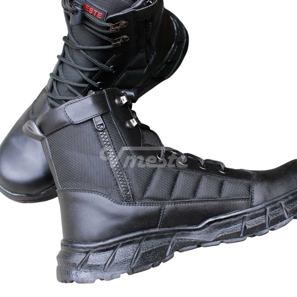 VMESTE - Sepatu PDL Rodion TNI Polri Brimob Security Satpam Kulit Asli Hitam Doff