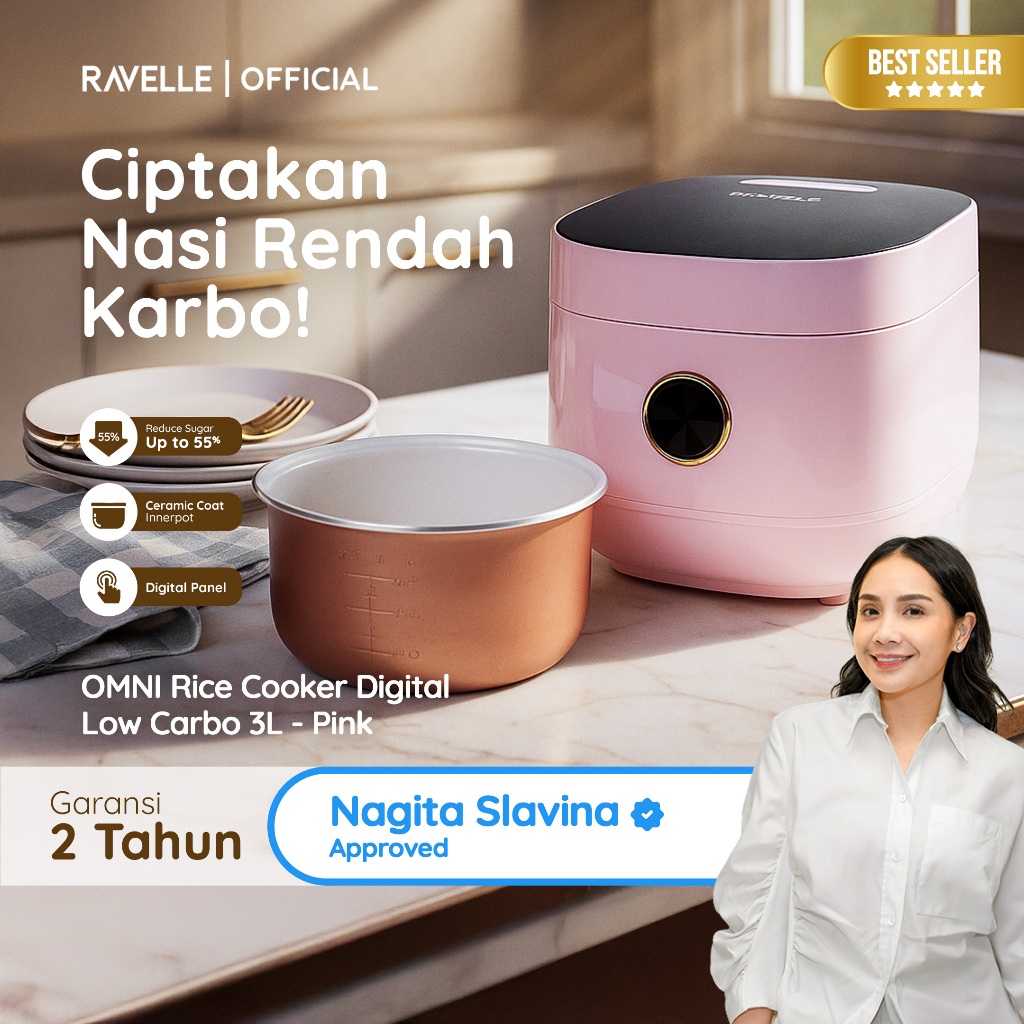 RAVELLE OMNI Rice Cooker Digital Low Carbo Less Sugar 1.2 Liter Nasi (3 Liter) - Penanak Nasi Low Watt ( Ceramic coated