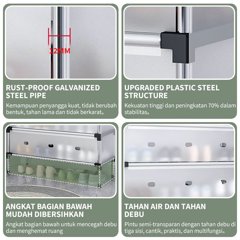 YONEZAWA Rak Sepatu Rak Gantung Baju Rak Tas Rak Topi Rak Susun Serbaguna Rak Penyimpanan Dengan Penutup Stand Hanger Ra