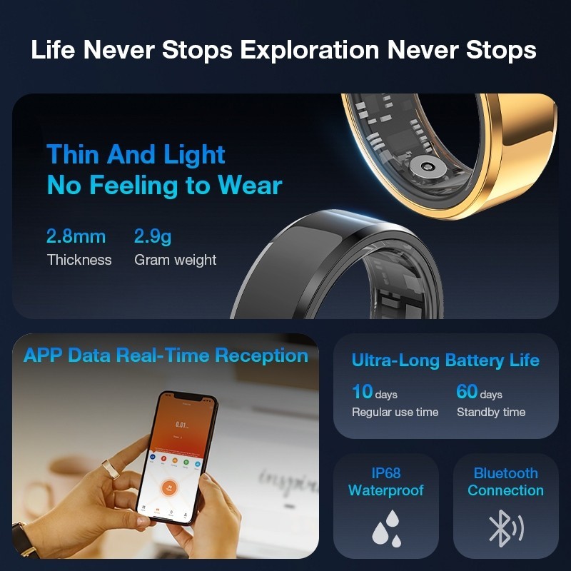 AOLON RING GEN 3 SMART RING HEART RATE & BLOOD OXYGEN MONITORING IP68 WATERPROOF SWIMMING DIVING SPORTS & HEALTH RECORDS