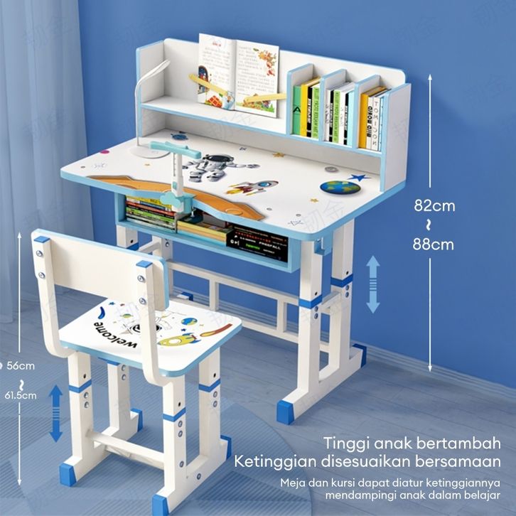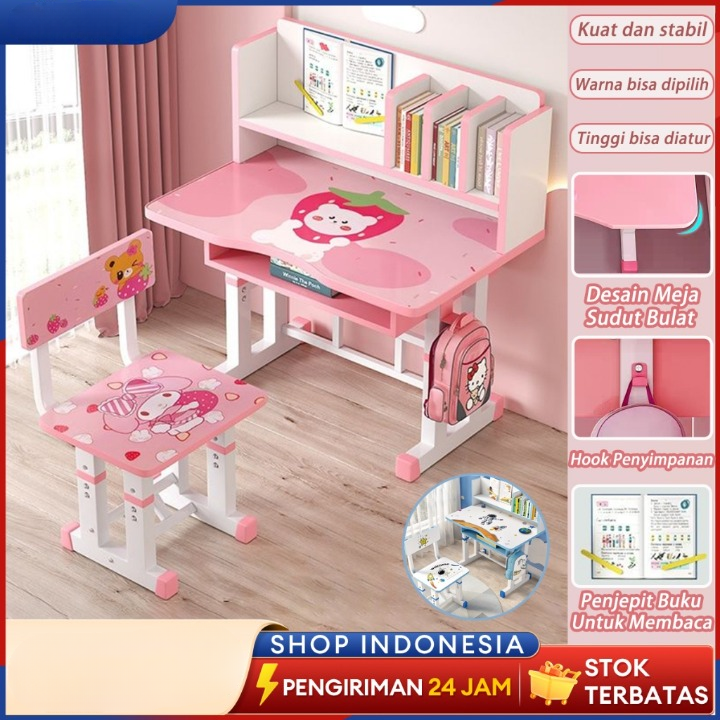 MEJA BELAJAR ANAK BERKUALITAS / MEJA BELAJAR ANAK PEREMPUAN / MEJA BELAJAR ANAK SET KURSI ADJUSTABLE 3 SAMPAI 16 TAHUN