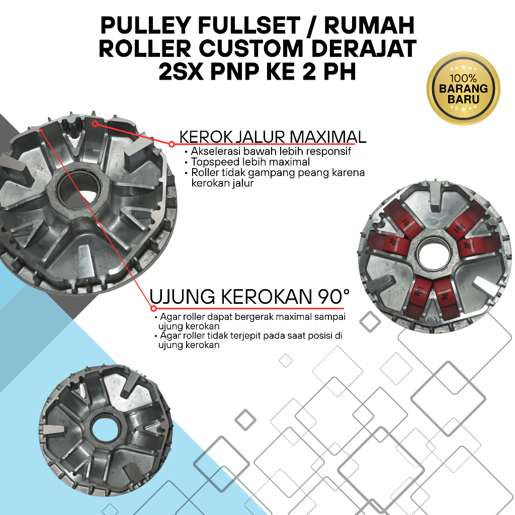 Pulley full set/Rumah Roller Paket Kirian Bubut Custom 2SX PNP Ke 2PH Mio m3 S Z 13.5 13.8 14