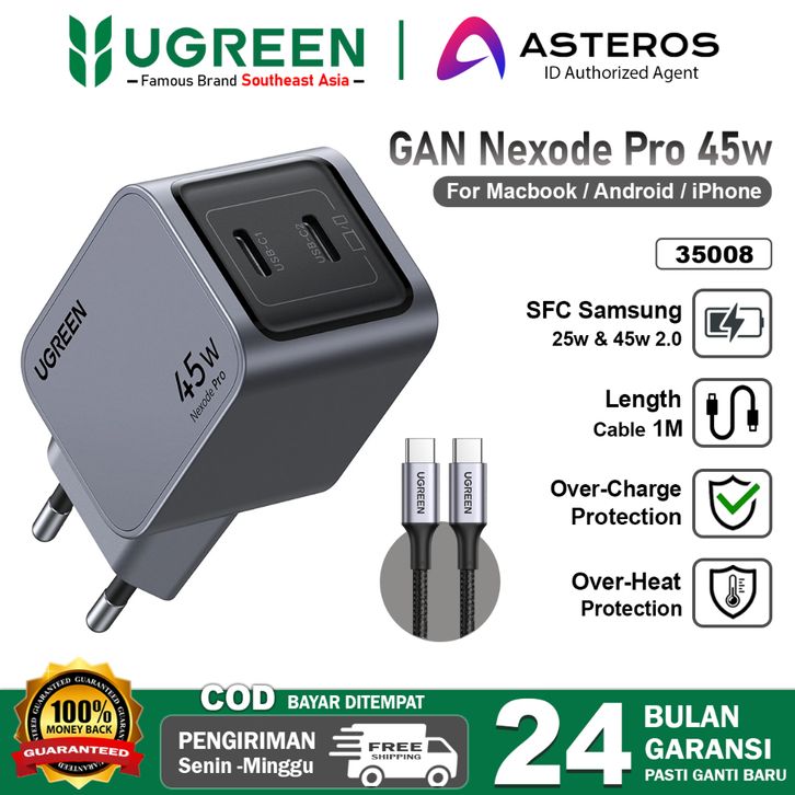 [Star] Kepala Charger UGREEN Nexode GAN Pro Charger Samsung PD Type C Super Fast Charging 45w - 65w SFC 2.0