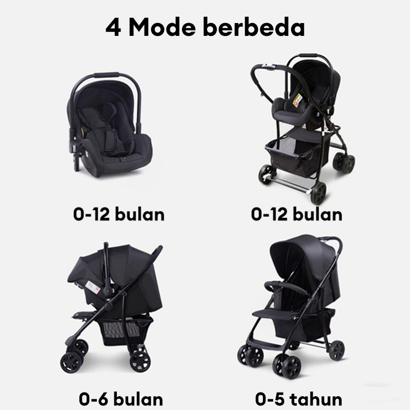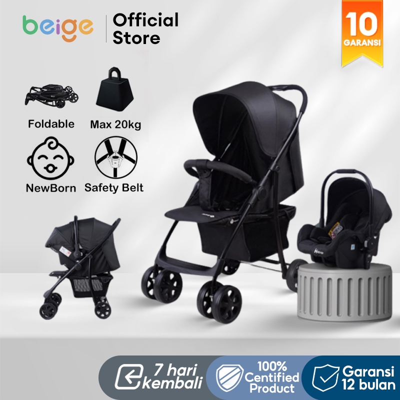 BEIGE Stroller + Car Seat Kursi Mobil Anak 4in1 Bayi Stroller Bayi AutoFold