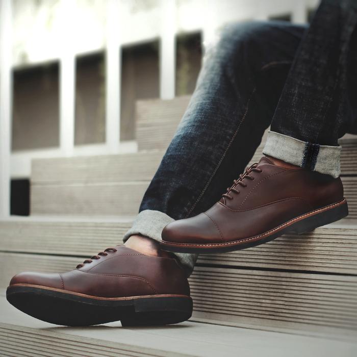 [Star]OXFORD BROWN (KULIT ASLI)|MNM x Kenzio| Sepatu Pantofel Pria ORIGINAL - Brown, 40