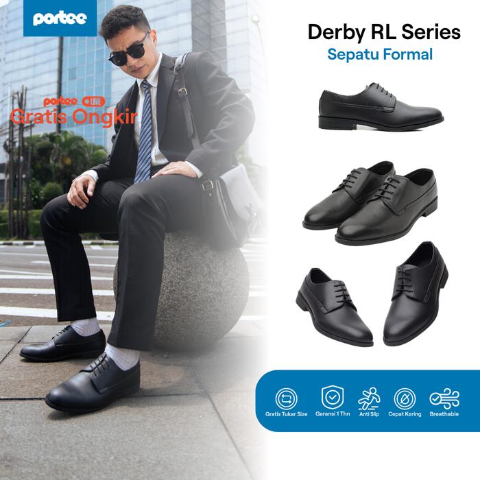[Star]Sepatu Formal Pria Portee Derby RL Hitam – Pantofel Nyaman | Kerja, Wisuda, & Undangan - 40