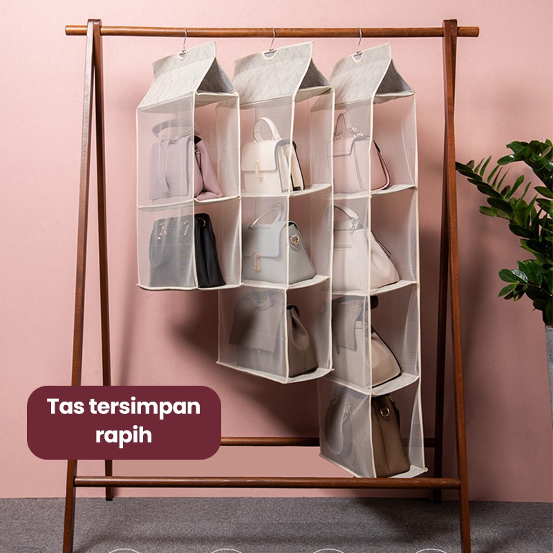 Dejavu Rak Tas Gantung Mika Susun Tempat Penyimpanan Tas Anti Debu Organizer Bag Storage Box Rak Gantung Sepatu Transpar