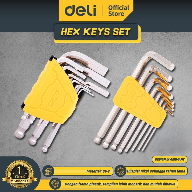 Deli Hex Keys Sets / Kunci L Bulat Set Panjang Kuat Isi 8/9pc DL23010X