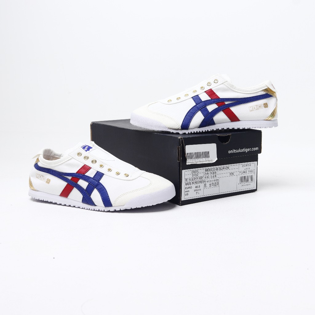 Sepatu Sneakers T*ger M*xico 66 Slip On White Blue Red Gol*