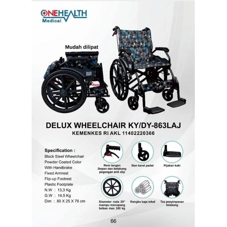 Kursi roda lansia ONEHEALTH KURSI RODA DELUX KY/DY-863LAJ Kursi roda traveling