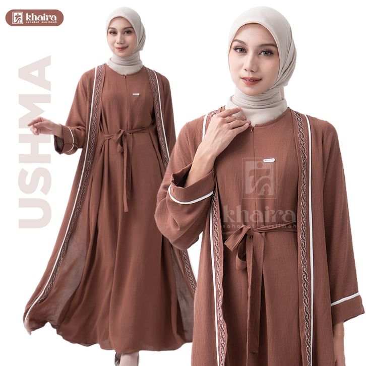 Khaira | Ushma - Baju Gamis Abaya Rompi Modern Kekinian Bahan Krinkle Airflow Denim