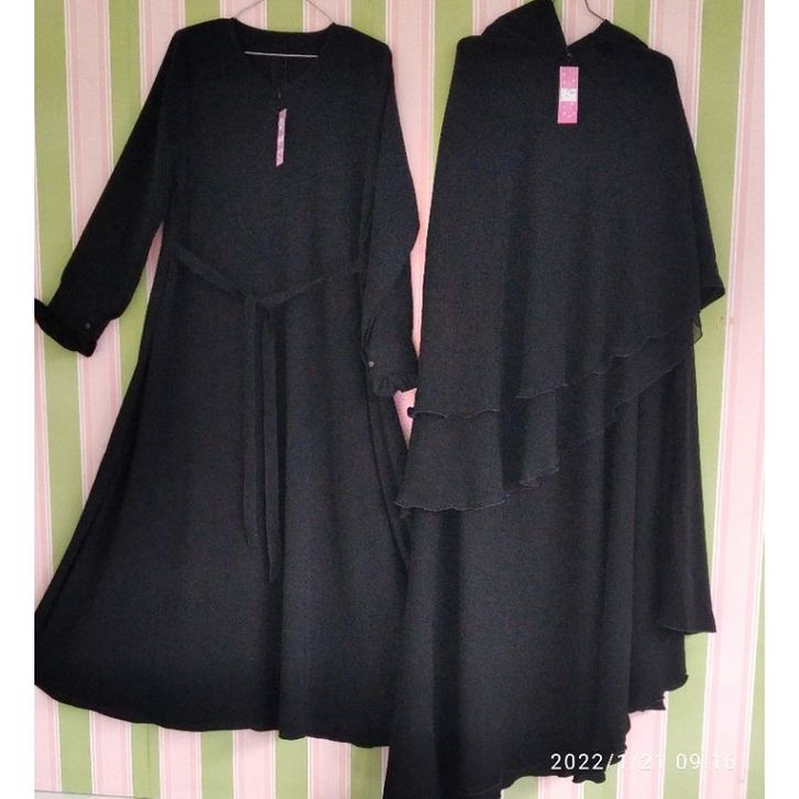 Setelan Gamis Dan Jilbab Safar Jetblack Nyaman